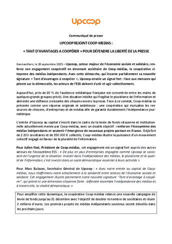 Dossier de presse du groupe Upcoop : TÉLÉCHARGER LE PDF